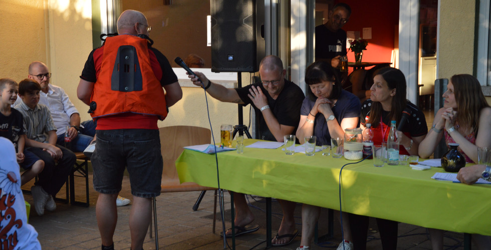 Beim Grillfest ließen die Teilnehmer den Tag bei Essen und Getränken gemütlich ausklingen. Die Mitglieder der Karateschule hatten die Getränkeausgabe, eine Tombola und ein Programm mit Sketch, Ehrungen und Gesang organisiert. Eine Metzgerei aus der Region grillte und auch der Eiswagen sowie ein DJ waren bestellt worden. Am Schluss wurde noch getanzt. Trotz der aufwendigen Vorbereitung, den vielen Arbeitseinsätzen und dem anstrengenden Training bei sommerlichen Temperaturen war es ein rundum gelungener Lehrgang mit Grillfest, der sicher allen Beteiligten noch lange im Gedächtnis bleiben wird.